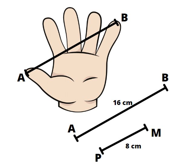 Wymierz szerokość Twojej dłoni i narysuj odcinek PM, który jest 2 razy krótszy.