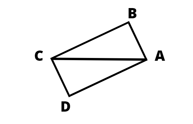 Połącz punkty A i B, a otrzymasz bok AB. Zmierz go i narysuj taki sam bok pod kątem prostym w punkcie C, a otrzymasz bok CD. Teraz wystarczy połączyć punkty D i A.