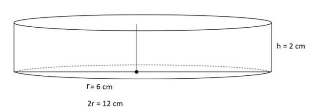 Walec powstał poprzez obrót prostokąta o wymiarach 2 cm x 6 cm wokół boku o długości 2 cm. Wysokość walca równa jest długości boku, wokół którego obrócił się prostokąt, czyli h = 2 cm. Bok o długości 6 cm stanowi promień koła, które jest w podstawie bryły, czyli r = 6 cm. Średnica koła równa jest dwóm długościom promienia, czyli ś = 2r = 2 ∙ 6 = 12 cm. Wykonaj rysunek i zaznacz na nim wysokość i średnicę.