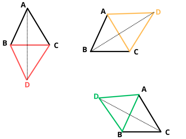 Wskaż ilość rozwiązań zadania, w którym szukamy punktu D takiego, aby czworokąt o wierzchołkach A, B, C, D miał środek symetrii.