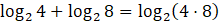 Suma wartości logarytmów po lewej stronie równości tyle, co wartość logarytmu po prawej stronie równości, czyli zachodzi