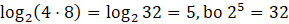 Aby udowodnić tę równość, oblicz wartości logarytmów po lewej stronie, po czym je zsumuj, a następnie sprawdź wartość logarytmu po prawej stronie:
