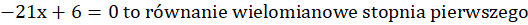 W tym zadaniu musisz wskazać równania wielomianowe pierwszego stopnia wśród równań znajdujących się w ramce powyżej, a następnie obliczyć ich miejsce zerowe.