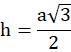 W tym zadaniu musisz zapisać równość wynikającą z twierdzenia pitagorasa dla jednego z tych trójkątów i wyznaczyć z niej h, wiedząc, że trójkąt na rysunku obok jest równoboczny, a wysokość dzieli ten trójkąt ten trójkąt na dwa trójkąty prostokątne.
