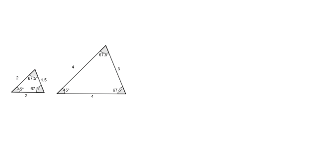 Narysuj dwa trójkąty o różnych długościach boków, ale tych samych miarach kątów.