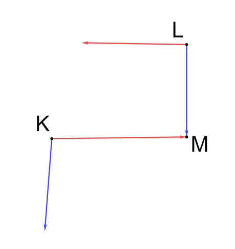 Najpierw musisz narysować trzy punkty K, L i M. Następnie narysować wektor