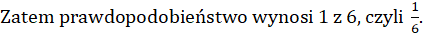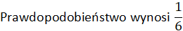 Jest sześć możliwych wyników rzutu kością: 1, 2, 3, 4, 5, 6, a nas interesuje tylko jeden, czyli 6.