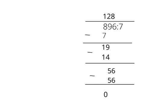 Sprawdzamy, ile 7 mieści się w 8, tylko 1, a więc zapisujemy nad kreską i mnożymy 1 razy 7. Wykonujemy odejmowanie. Zostaje nam liczba 1 i przepisujemy 9 zapisaną powyżej, i teraz zastanawiamy się, ile 7 mieści się w 19. Robimy tak z każdą liczbą po kolei.