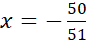 51x = -50 / : 51