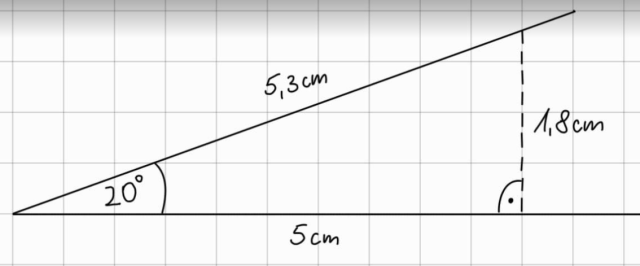 W tym zadaniu korzystając z kątomierza oraz linijki musisz wyznaczyć wartości funkcji trygonometrycznych dla kąta 20°.