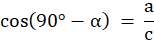 Miarę 90°-α ma drugi z kątów ostrych danego trójkąta. Wykorzystując tę informację, podajesz stosunki boków odpowiednich funkcji trygonometrycznych.