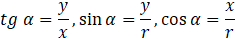 Niech P = (x, y) będzie punktem (różnym od punktu (0, 0)) leżącym na ramieniu końcowym kąta α.