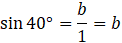 Skorzystaj ze wzoru na sinus kąta ostrego w trójkącie prostokątnym i ustal, że szukana wartość to sin 40°.