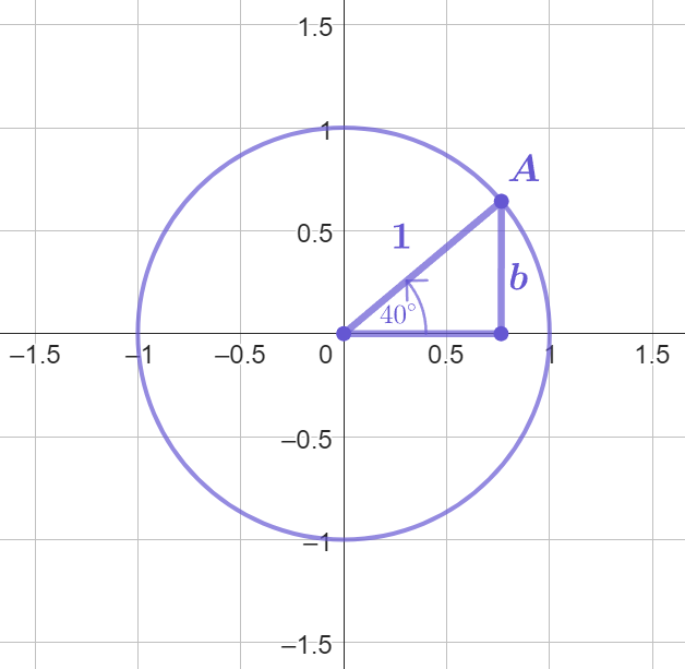 Dany jest okrąg o promieniu 1, tak jak na rysunku. Wyznacz wartość będącą drugą współrzędną punku A.
