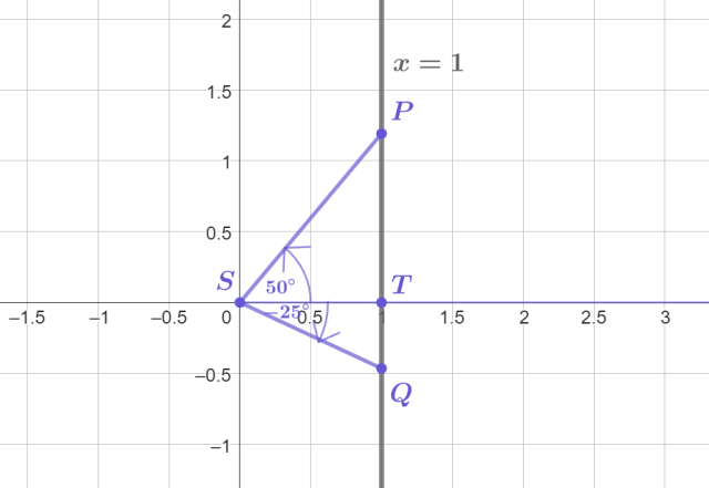 Korzystając ze wzoru na tangens kąta ostrego w trójkącie, wyznacz drugą współrzędną punktów S i Q.
