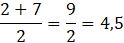 Mając dane liczby 2 oraz 7, wyznacz liczbę pomiędzy nimi.