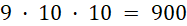 Na pierwszym miejscu może się znaleźć 9 cyfr, ponieważ nie może tam być 0, na kolejnych miejscach może być już po 10 cyfr.