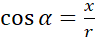 Cosinusem kąta α nazywamy stosunek odciętej punktu P (pierwszej współrzędnej) do odległości tego punktu