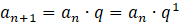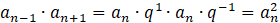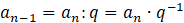 Aby zapisać an-1 i an+1 należy podzielić lub pomnożyć an i q. Zapisz więc, że: