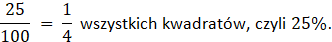 Kwadraty przedstawione na rycinie zostały podzielone na 100 jednakowych części. Oblicz procent kwadratu, który zamalowano i zapisz, jaki to ułamek.