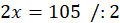 Niech x to będzie szukana liczba. Wiadomo, że jej dwukrotność to 105, więc dzieląc przez 2 znajdziesz wynik: