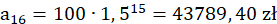 Oblicz wartości kieszonkowego w szesnastym miesiącu jako kolejne wyrazy ciągu, gdzie w propozycji wzór wygląda następująco: