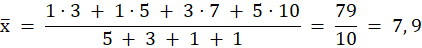 W tym zadaniu musisz obliczyć średnią ważoną liczb 3, 5, 7 i 10 z wagami odpowiednio 1, 3 i 5