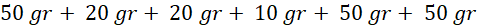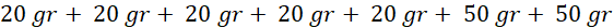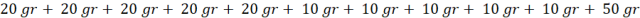Zapisz 200 gr za pomocą 5 gr, 10 gr, 20 gr i 50 gr .