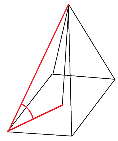 W tym zadaniu musisz narysować ostrosłup prawidłowy czworokątny oraz zaznaczyć kąt między krawędzią boczną a podstawą