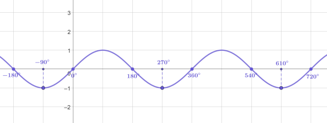 Bazując na sinusoidzie, wyznacz kąty, dla których funkcja y = sin α osiąga wartość -1.