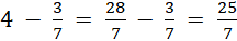 Zamień liczby na ułamki niewłaściwe. Gdy odejmujemy dwa ułamki o jednakowych mianownikach, odejmujemy ich liczniki, a mianownik pozostawiamy bez zmian.