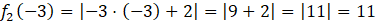 dla przykładowych argumentów x równych –1, –2, –3, 1, 2 i 3: