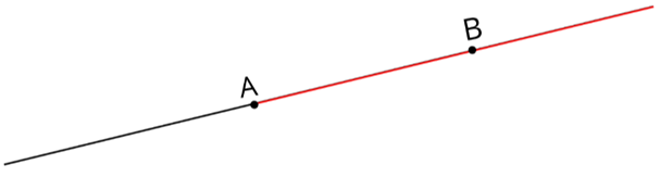 Na podanym rysunku oznacz półprostą AB zgodnie z prawdą. Pamiętaj, że półprosta ograniczona jest z jednej strony punktem, czyli ma początek w punkcie A, przechodzi przez punkt B i nie ma końca