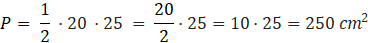 Pole rombu obliczamy, mnożąc dwie prostopadłe przekątne przez siebie i dzieląc wynik przez dwa. Skorzystaj ze wzoru:
