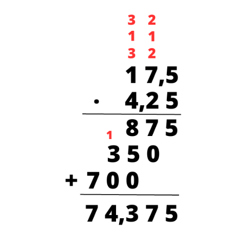 W tym zadaniu musisz wykonać mnożenie pisemne i znaleźć liczbę, która jest 17,5 razy większa od liczby 4,25.