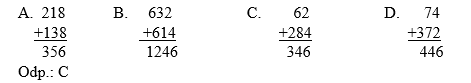 Dodaj do siebie sposobem pisemnym podane liczby i wskaż prawidłową odpowiedź.