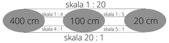 Uzupełnij dane w grafach tak, aby informacje były prawidłowe. Musisz pamiętać, aby wpisać poprawnie skale. Podane liczby pomnóż, jeśli skala wynosi x : 1 oraz podziel, jeśli skala wynosi 1 : x, przez daną skalę.