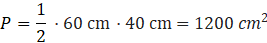 – Pole trójkąta o boku długości 60 cm i wysokości opuszczonej na ten bok długości 4 dm jest równe 12 cm2 – Fałsz