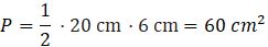 – Pole trójkąta o boku długości 2 dm i wysokości opuszczonej na ten bok długości 6 cm jest równe 6 cm2 – Fałsz