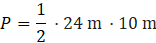 Trójkątna działka ma podstawę długości 24 m i wysokość długości 10 m. Podstaw podane wartości do wzoru i oblicz pole trójkąta. Pamiętaj o zapisaniu wyniku w jednostkach kwadratowych.