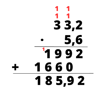 Mnożąc sposobem pisemnym, należy przemnożyć każdą liczbę znajdującą się na górze zapisu przez liczby na dole. Wyniki mnożenia zapisuj pod kreską, zaczynając od miejsca pod liczbą, przez którą mnożyłeś. Jeśli wynik jest dwucyfrowy, zapisz cyfrę jedności pod kreską, a cyfrę dziesiątek dodaj do następnego wyniku mnożenia. Następnie wykonaj dodawanie i przesuń przecinek o odpowiednią ilość miejsc. W tym przypadku po przecinku znajdują się dwie cyfry, więc w wyniku także muszą znajdować się dwie cyfry.