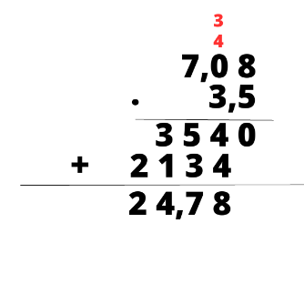 Mnożąc sposobem pisemnym, należy przemnożyć każdą liczbę znajdującą się na górze zapisu przez liczby na dole. Wyniki mnożenia zapisuj pod kreską, zaczynając od miejsca pod liczbą, przez którą mnożyłeś. Jeśli wynik jest dwucyfrowy, zapisz cyfrę jedności pod kreską, a cyfrę dziesiątek dodaj do następnego wyniku mnożenia. Następnie wykonaj dodawanie i przesuń przecinek o odpowiednią ilość miejsc. W tym przypadku po przecinku znajdują się cztery cyfry, więc w wyniku także muszą znajdować się cztery cyfry.