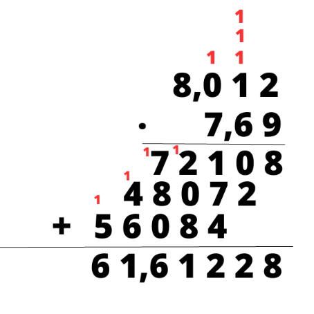 Mnożąc sposobem pisemnym, należy przemnożyć każdą liczbę znajdującą się na górze zapisu przez liczby na dole. Wyniki mnożenia zapisuj pod kreską, zaczynając od miejsca pod liczbą, przez którą mnożyłeś. Jeśli wynik jest dwucyfrowy, zapisz cyfrę jedności pod kreską, a cyfrę dziesiątek dodaj do następnego wyniku mnożenia. Następnie wykonaj dodawanie i przesuń przecinek o odpowiednią ilość miejsc. W tym przypadku po przecinku znajdują się dwie cyfry, więc w wyniku także muszą znajdować się dwie cyfry.