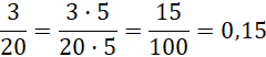 Rozszerz lub skróć ułamki zwykłe, aby otrzymać w mianowniku liczbę 10 lub 100. Następnie zamień je na ułamki dziesiętne: wstaw w miejsce liczby całości zero, a za przecinkiem wpisz liczbę z licznika. Pamiętaj, za przecinkiem musi być tyle miejsc, ile zer ma mianownik ułamka zwykłego – gdy liczba z licznika jest za mała, wstaw pomiędzy przecinek i tę liczbę potrzebne zera.