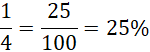 Jedna czwarta powierzchni diagramu to jedna czwarta ze 100%. Rozszerz ułamek podany w treści do mianownika równego 100 – liczba z licznika to liczba procent.