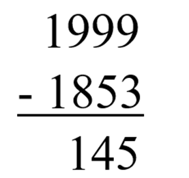 Musisz wykonać odejmowanie pisemne. Odjemną jest rok 1999, a odjemnik to rok 1853.
