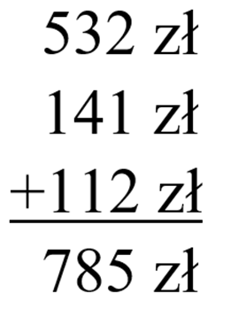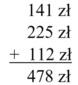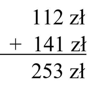 Musisz odczytać i dodać do siebie opłaty wskazane w poszczególnych punktach. Pamiętaj o tym, aby zapisać liczby jedna pod drugą w taki sposób, aby cyfry jedności były pod cyframi jedności, cyfry dziesiątek pod cyframi dziesiątek itd. Należy dodawać do siebie cyfry wpisane w jednej kolumnie, zaczynając od cyfr jedności.