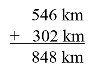 Musisz dodać do siebie sposobem pisemnym km, które turysta przejechał pociągiem i km, które przejechał autobusem. Jeśli wynik jest mniejszy niż 850 km, zaznacz pkt. A, jeśli większy zaznacz B. Pamiętaj o tym, by zapisać liczby jedna pod drugą w taki sposób, aby cyfry jedności były pod cyframi jedności, cyfry dziesiątek pod cyframi dziesiątek itd. Należy dodawać do siebie cyfry wpisane w jednej kolumnie, zaczynając od cyfr jedności.