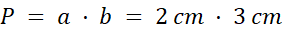 Zauważ, że wysokość tego równoległoboku to 2 cm (czyli tyle, ile jeden bok prostokąta), a długość podstawy równoległoboku to 3 cm (czyli tyle, ile drugi bok prostokąta).