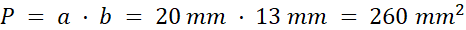 Trzeci prostokąt: a = 2 cm = 20 mm, b = 13 mm